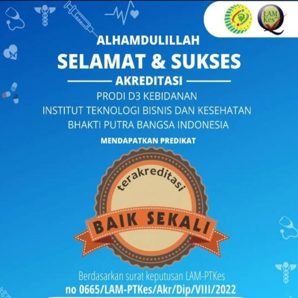 Setelah melalui proses visitasi pada Juli 2022 lalu oleh tim assessor LAM-PTKes, akhirnya hasil akreditasi Prodi D3 Kebidanan IBISA telah keluar, dengan Hasil Akreditasi Sangat Baik. Hal Ini dibuktikan dengan SK LAM-PTKes dengan Nomor 0065/LAM-PTKes/Akr/Dip/VIII/2022 tentang status, nilai dan peringkat akreditasi program studi kebidanan Institut Teknologi Bisnis dan Kesehatan Bhakti Putra Bangsa Indonesia, yang dipublikasikan langsung melalui Website LAM-PTKes update 12 Agustus 2022 untuk lima tahun kedepan. Hasil akreditasi ini menjadikan Prodi D3 Kebidanan IBISA dapat mempertahankan peringkat yang dulunya mendapat akreditasi B sekarang menjadi Sangat Baik. oleh karena itu hasil ini sangat membanggakan bagi Civitas Akademik dan seluruh elemen keluarga besar IBISA.