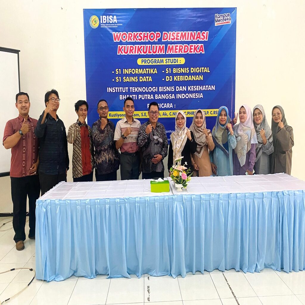Institut Teknologi Bisnis dan Kesehatan Bhakti Putra Bangsa Indonesia (IBISA) menggelar “Workshop Diseminasi Kurikulum Merdeka”. Berlangsung di Lantai 3 Gedung A IBISA, Sabtu-Minggu (3-4 Agustus 2024), diikuti oleh para dosen dan Tenaga Kependidikan di IBISA. Menghadirkan narasumber Dr. Kustiyono, S.Kom, S.E, M.Kom, Ak, C.NHRP, C.PHRM, C.TLP, C.RSP.